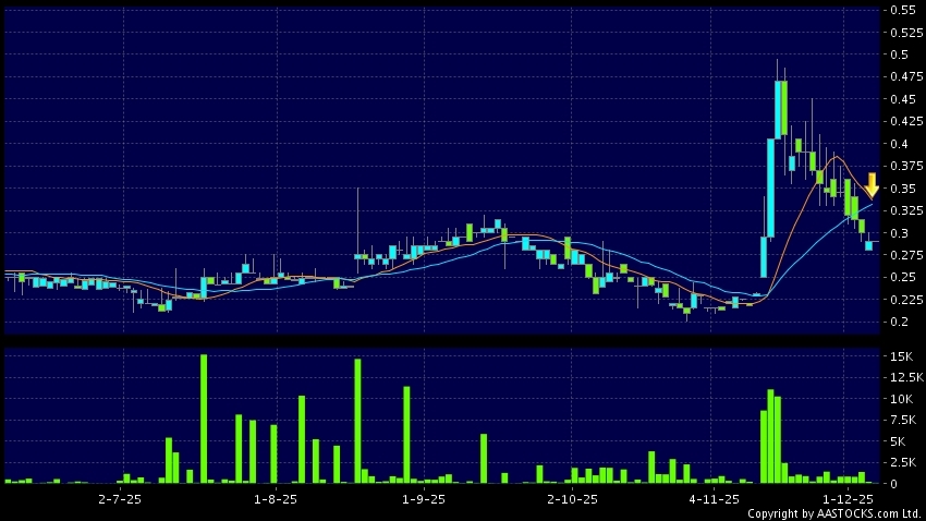 宏基集團控股(01718.HK) 0.000 (0.000%) 10天移動平均線跌穿20天移動平均線,出現死亡交叉。現價報0.290,無升跌,成交量8.50萬股,成交額2.47萬。