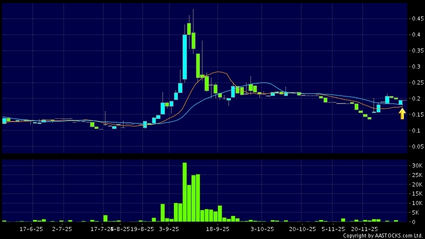 成志控股(01741.HK) -0.009 (-5.325%) 10天移動平均線升穿20天移動平均線,出現黃金交叉。現價報0.195,無升跌,成交量0.00股,成交額0.00。