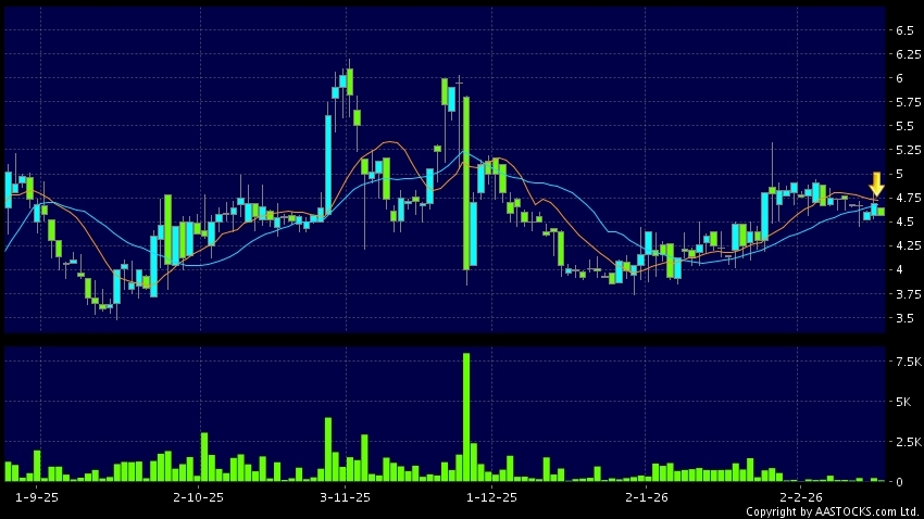 免責聲明:以上金融市場數據、報價、圖表 及/或各種技術分析指標乃根據公開資料分析和演釋自動生成的,僅作參考使用。此類自動生成的內容並不代表AASTOCKS.com Limited的立場。AASTOCKS.com Limited並不保證其準確性、完整性、實時性或者正確性。閣下應諮詢獨立專業意見,以核實定價資料或獲取更詳細的市場信息及須為所有跟隨此類自動生成的內容執行的交易或使用該內容負責。