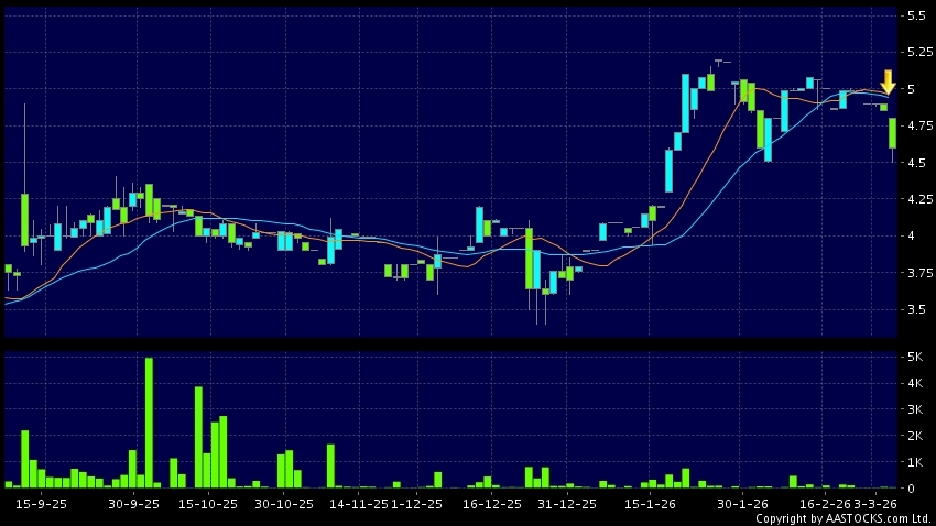 免責聲明:以上金融市場數據、報價、圖表 及/或各種技術分析指標乃根據公開資料分析和演釋自動生成的,僅作參考使用。此類自動生成的內容並不代表AASTOCKS.com Limited的立場。AASTOCKS.com Limited並不保證其準確性、完整性、實時性或者正確性。閣下應諮詢獨立專業意見,以核實定價資料或獲取更詳細的市場信息及須為所有跟隨此類自動生成的內容執行的交易或使用該內容負責。