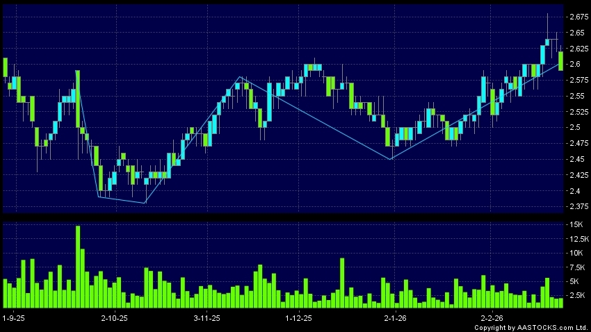 免責聲明:以上金融市場數據、報價、圖表 及/或各種技術分析指標乃根據公開資料分析和演釋自動生成的,僅作參考使用。此類自動生成的內容並不代表AASTOCKS.com Limited的立場。AASTOCKS.com Limited並不保證其準確性、完整性、實時性或者正確性。閣下應諮詢獨立專業意見,以核實定價資料或獲取更詳細的市場信息及須為所有跟隨此類自動生成的內容執行的交易或使用該內容負責。