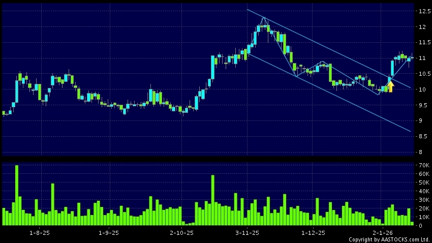 區域突破指股價在過去的一段時間只在一個範圍在內活動,然後股價上升作出突破,升穿區域的頂部,技術走勢向好。(港股報價延遲最少十五分鐘。沽空資料截至 2026-01-27 16:25。)