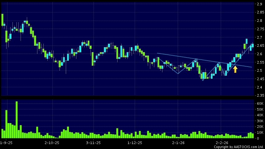 頭肩底是典型的利好訊號,當股價升穿阻力線時,升勢確認股價將持續上升,技術走勢向好。(港股報價延遲最少十五分鐘。沽空資料截至 2026-03-06 16:25。)