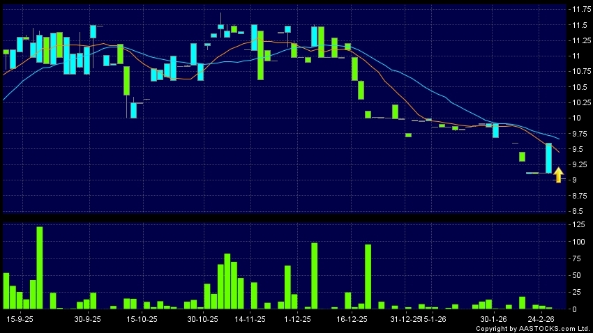 康寧醫院(02120.HK) -0.680 (-7.320%) 10天移動平均線升穿20天移動平均線,出現黃金交叉。現價報9.020,無升跌,成交量0.00股,成交額0.00。