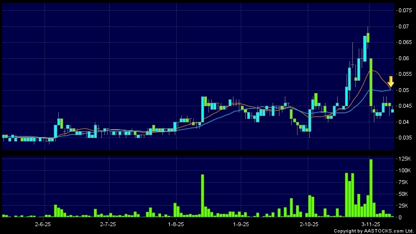 正味集團(02147.HK) -0.002 (-4.348%) 10天移動平均線跌穿20天移動平均線,出現死亡交叉。現價報0.044,下跌2.222%,成交量2.26百萬股,成交額10.04萬。