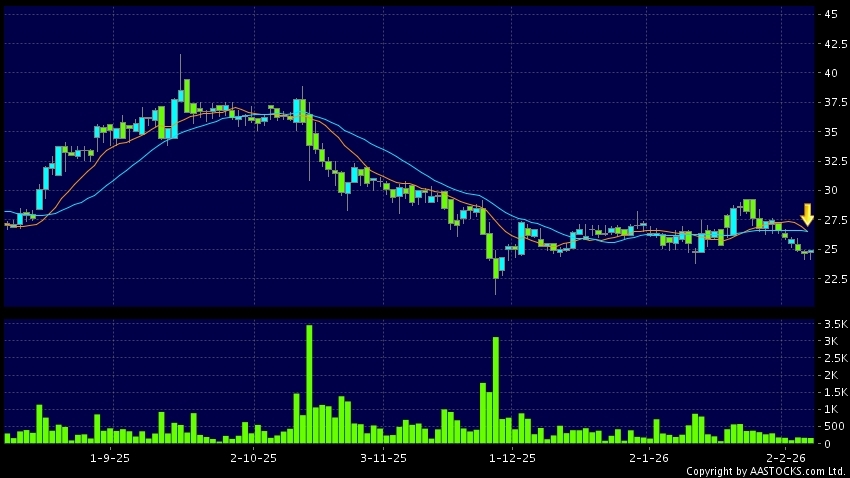 死亡交叉是一個利淡信號,指股價的短期移動平均線跌穿長期移動平均線,例如50天線跌穿250天線,在圖表上構成交叉的形狀。股價通常會下跌形成一個下降趨勢,技術走勢偏軟。(港股報價延遲最少十五分鐘。沽空資料截至 2026-02-06 16:25。)