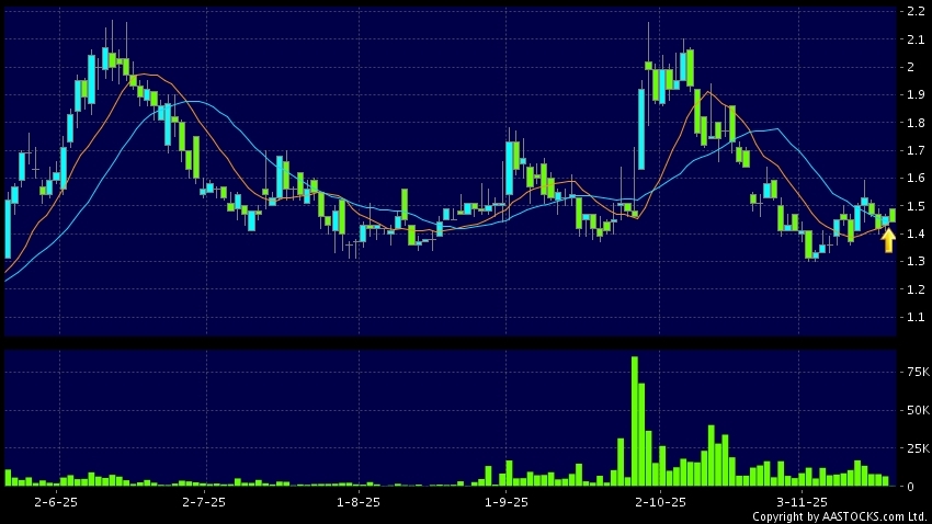 集海資源(02489.HK) -0.030 (-2.256%) 沽空 $58.54萬; 比率 6.038% 10天移動平均線升穿20天移動平均線,出現黃金交叉。現價報1.420,下跌2.740%,成交量82.50萬股,成交額1.19百萬。