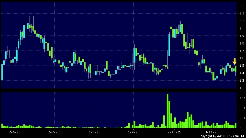 免責聲明:以上金融市場數據、報價、圖表 及/或各種技術分析指標乃根據公開資料分析和演釋自動生成的,僅作參考使用。此類自動生成的內容並不代表AASTOCKS.com Limited的立場。AASTOCKS.com Limited並不保證其準確性、完整性、實時性或者正確性。閣下應諮詢獨立專業意見,以核實定價資料或獲取更詳細的市場信息及須為所有跟隨此類自動生成的內容執行的交易或使用該內容負責。