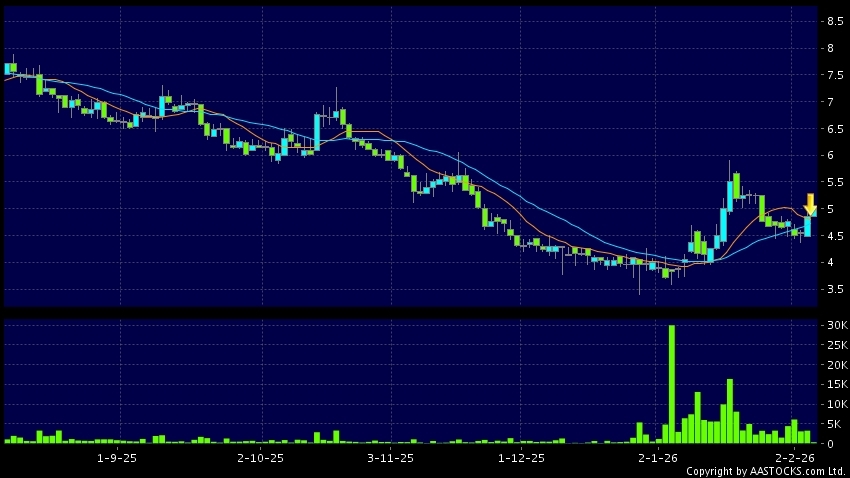 免責聲明:以上金融市場數據、報價、圖表 及/或各種技術分析指標乃根據公開資料分析和演釋自動生成的,僅作參考使用。此類自動生成的內容並不代表AASTOCKS.com Limited的立場。AASTOCKS.com Limited並不保證其準確性、完整性、實時性或者正確性。閣下應諮詢獨立專業意見,以核實定價資料或獲取更詳細的市場信息及須為所有跟隨此類自動生成的內容執行的交易或使用該內容負責。