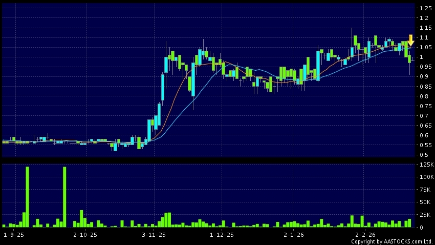 泓基集團(02535.HK) -0.020 (-2.000%) 10天移動平均線跌穿20天移動平均線,出現死亡交叉。現價報0.980,上升1.031%,成交量21.00萬股,成交額20.60萬。