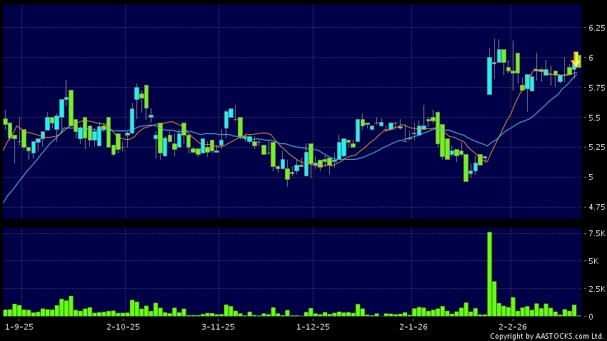 免責聲明:以上金融市場數據、報價、圖表 及/或各種技術分析指標乃根據公開資料分析和演釋自動生成的,僅作參考使用。此類自動生成的內容並不代表AASTOCKS.com Limited的立場。AASTOCKS.com Limited並不保證其準確性、完整性、實時性或者正確性。閣下應諮詢獨立專業意見,以核實定價資料或獲取更詳細的市場信息及須為所有跟隨此類自動生成的內容執行的交易或使用該內容負責。