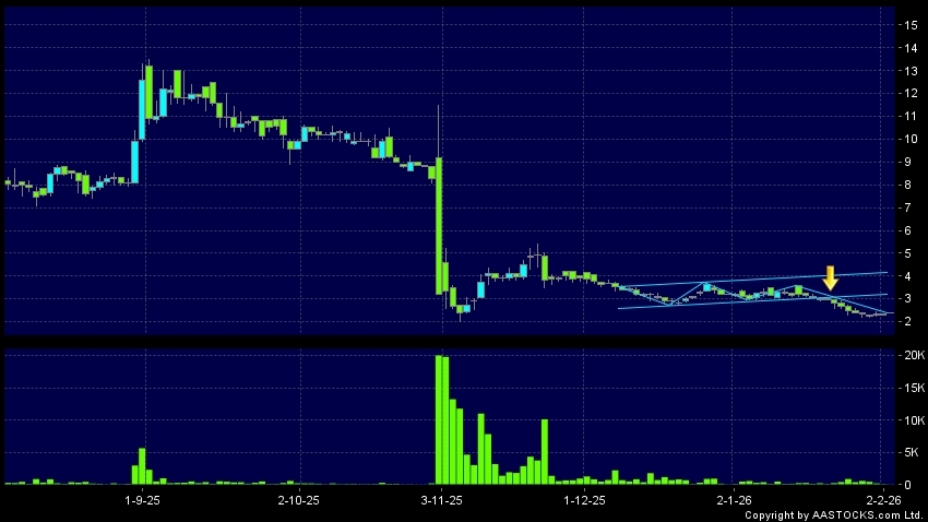 免責聲明:以上金融市場數據、報價、圖表 及/或各種技術分析指標乃根據公開資料分析和演釋自動生成的,僅作參考使用。此類自動生成的內容並不代表AASTOCKS.com Limited的立場。AASTOCKS.com Limited並不保證其準確性、完整性、實時性或者正確性。閣下應諮詢獨立專業意見,以核實定價資料或獲取更詳細的市場信息及須為所有跟隨此類自動生成的內容執行的交易或使用該內容負責。
