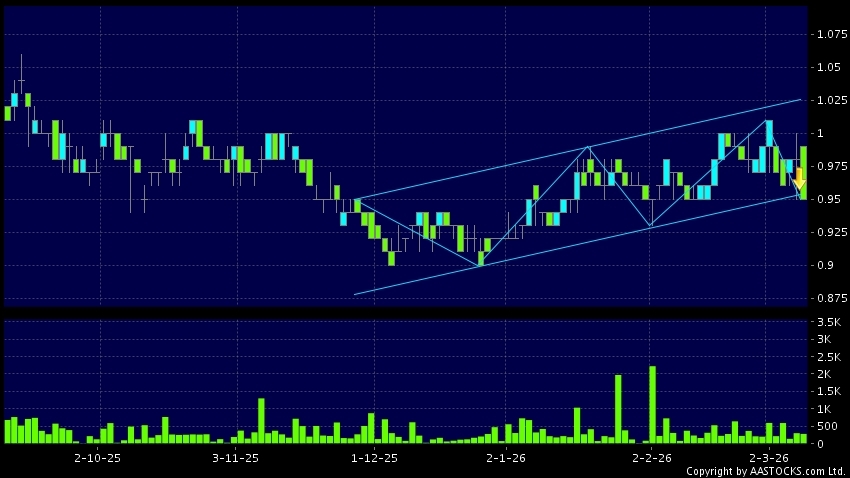 明輝國際(03828.HK) -0.020 (-2.105%) 呈現區域下軌突破。現價報0.950,下跌3.061%,成交量27.80萬股,成交額26.68萬。