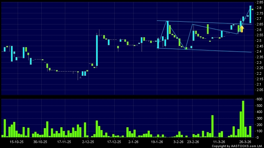 免責聲明:以上金融市場數據、報價、圖表 及/或各種技術分析指標乃根據公開資料分析和演釋自動生成的,僅作參考使用。此類自動生成的內容並不代表AASTOCKS.com Limited的立場。AASTOCKS.com Limited並不保證其準確性、完整性、實時性或者正確性。閣下應諮詢獨立專業意見,以核實定價資料或獲取更詳細的市場信息及須為所有跟隨此類自動生成的內容執行的交易或使用該內容負責。
