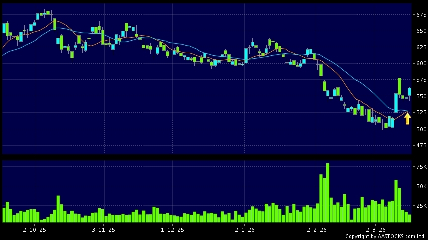 黃金交叉是一個利好訊號,指股價的短期移動平均線升穿長期移動平均線,例如50天線升穿250天線,在圖表上構成交叉的形狀。股價通常會上升形成一個上升趨勢,技術走勢向好。(港股報價延遲最少十五分鐘。沽空資料截至 2026-03-16 16:25。)