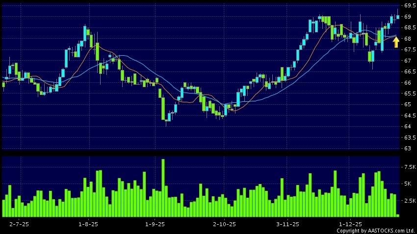 CLP HOLDINGS(00002.HK)'s SMA 10 crosses above SMA 20, which is a golden cross. Last printed at 69.050; rose 0.290%; on volume of 530.74K shares and turnover of $36.66MRecent Perfor...