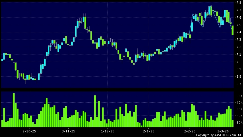 Disclaimer:The information, financial market data, quotes, charts, statistics and / or various technical analysis indicators are automatically generated based on the analyses and interpretations of publicly available information and should be used as references only at your own discretion. Such automatically generated content does not reflect the views or opinions of AASTOCKS.com Limited nor does AASTOCKS.com Limited make any guarantees to their accuracy, completeness, timeliness or correctness. You are advised to consult independent professional advice to verify pricing information or to obtain more detailed market information. Any uses of information or trades executed following the said automatically generated content are taken at your own risk for your own account.