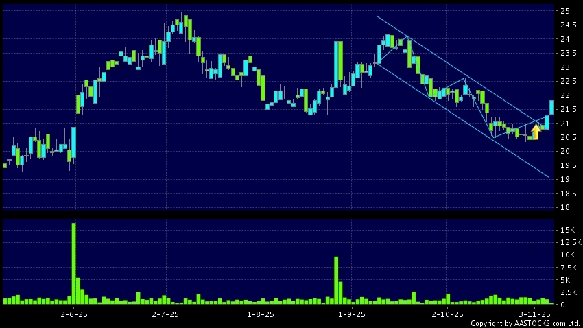 Disclaimer:The information, financial market data, quotes, charts, statistics and / or various technical analysis indicators are automatically generated based on the analyses and interpretations of publicly available information and should be used as references only at your own discretion. Such automatically generated content does not reflect the views or opinions of AASTOCKS.com Limited nor does AASTOCKS.com Limited make any guarantees to their accuracy, completeness, timeliness or correctness. You are advised to consult independent professional advice to verify pricing information or to obtain more detailed market information. Any uses of information or trades executed following the said automatically generated content are taken at your own risk for your own account.