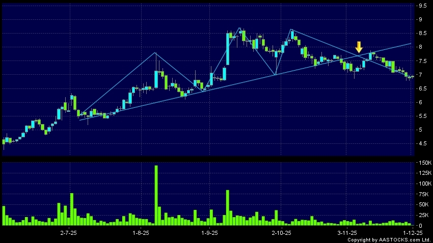 Head Shoulders top is a typical bearish signal, when stock price breaks the supportive level, downtrend would possibly start.(HK stocks quote is delayed for at least 15 mins.Short Selling Data as at 2025-12-01 16:25.)