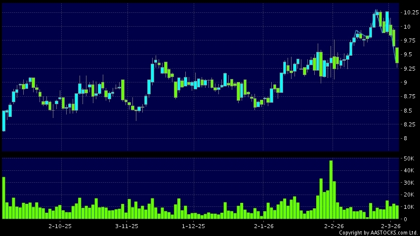 Disclaimer:The information, financial market data, quotes, charts, statistics and / or various technical analysis indicators are automatically generated based on the analyses and interpretations of publicly available information and should be used as references only at your own discretion. Such automatically generated content does not reflect the views or opinions of AASTOCKS.com Limited nor does AASTOCKS.com Limited make any guarantees to their accuracy, completeness, timeliness or correctness. You are advised to consult independent professional advice to verify pricing information or to obtain more detailed market information. Any uses of information or trades executed following the said automatically generated content are taken at your own risk for your own account.