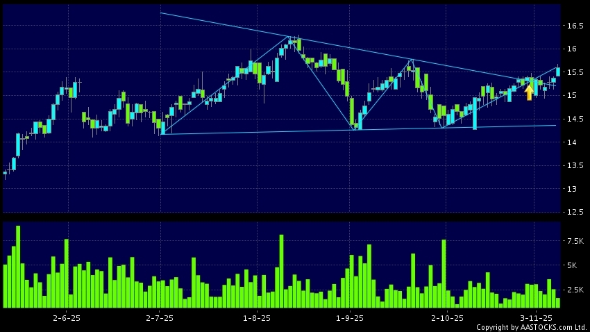 Triangle Breakout means the volatility of price movement is decreasing, stock price finally broke the top of triangle. An upward trend will start.(HK stocks quote is delayed for at least 15 mins.Short Selling Data as at 2025-11-17 16:25.)