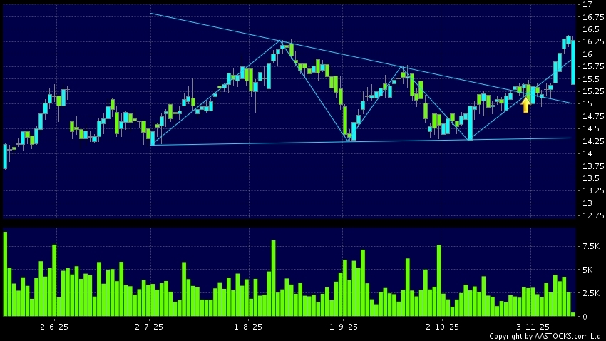 Triangle Breakout means the volatility of price movement is decreasing, stock price finally broke the top of triangle. An upward trend will start.(HK stocks quote is delayed for at least 15 mins.Short Selling Data as at 2025-11-17 16:25.)