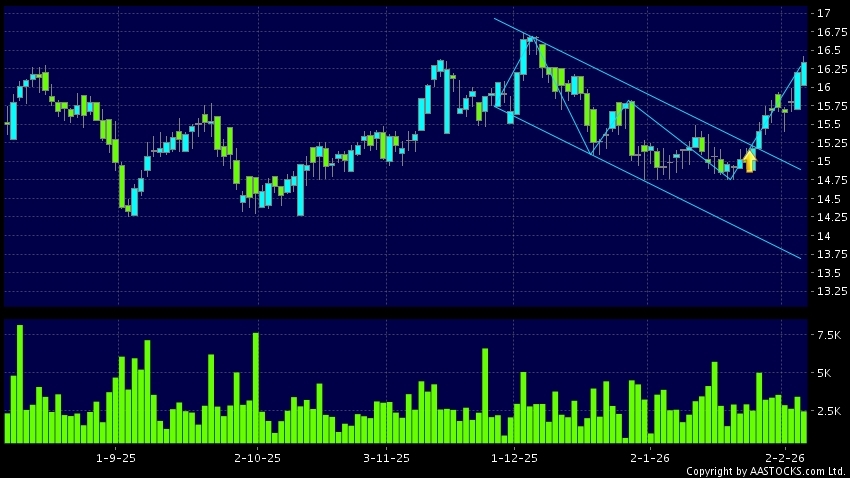 Range Breakout means stock price moved in a range recently, and it broke the top of the range finally. Investor should watch closely.(HK stocks quote is delayed for at least 15 mins.Short Selling Data as at 2026-02-16 12:25.)