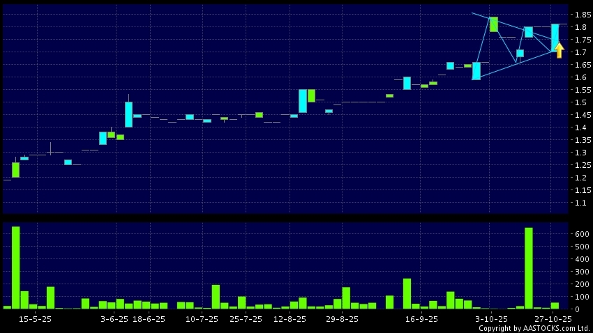 Triangle Breakout means the volatility of price movement is decreasing, stock price finally broke the top of triangle. An upward trend will start.(HK stocks quote is delayed for at least 15 mins.)
