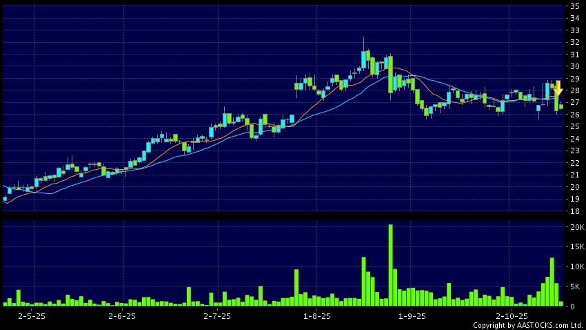 Disclaimer:The information, financial market data, quotes, charts, statistics and / or various technical analysis indicators are automatically generated based on the analyses and interpretations of publicly available information and should be used as references only at your own discretion. Such automatically generated content does not reflect the views or opinions of AASTOCKS.com Limited nor does AASTOCKS.com Limited make any guarantees to their accuracy, completeness, timeliness or correctness. You are advised to consult independent professional advice to verify pricing information or to obtain more detailed market information. Any uses of information or trades executed following the said automatically generated content are taken at your own risk for your own account.