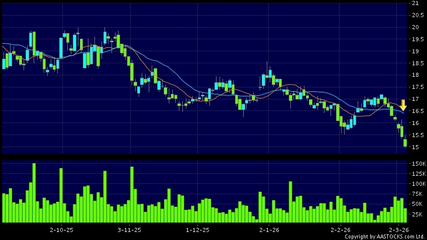 Death cross is a bearish signal, which the short term SMA crosses below long term SMA, such as SMA 50 crosses below SMA 250. Investor should watch closely.(HK stocks quote is delayed for at least 15 mins.Short Selling Data as at 2026-03-04 12:25.)