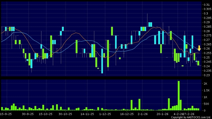 Disclaimer:The information, financial market data, quotes, charts, statistics and / or various technical analysis indicators are automatically generated based on the analyses and interpretations of publicly available information and should be used as references only at your own discretion. Such automatically generated content does not reflect the views or opinions of AASTOCKS.com Limited nor does AASTOCKS.com Limited make any guarantees to their accuracy, completeness, timeliness or correctness. You are advised to consult independent professional advice to verify pricing information or to obtain more detailed market information. Any uses of information or trades executed following the said automatically generated content are taken at your own risk for your own account.