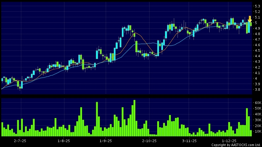 Disclaimer:The information, financial market data, quotes, charts, statistics and / or various technical analysis indicators are automatically generated based on the analyses and interpretations of publicly available information and should be used as references only at your own discretion. Such automatically generated content does not reflect the views or opinions of AASTOCKS.com Limited nor does AASTOCKS.com Limited make any guarantees to their accuracy, completeness, timeliness or correctness. You are advised to consult independent professional advice to verify pricing information or to obtain more detailed market information. Any uses of information or trades executed following the said automatically generated content are taken at your own risk for your own account.