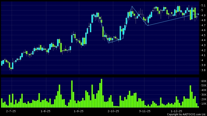 Disclaimer:The information, financial market data, quotes, charts, statistics and / or various technical analysis indicators are automatically generated based on the analyses and interpretations of publicly available information and should be used as references only at your own discretion. Such automatically generated content does not reflect the views or opinions of AASTOCKS.com Limited nor does AASTOCKS.com Limited make any guarantees to their accuracy, completeness, timeliness or correctness. You are advised to consult independent professional advice to verify pricing information or to obtain more detailed market information. Any uses of information or trades executed following the said automatically generated content are taken at your own risk for your own account.