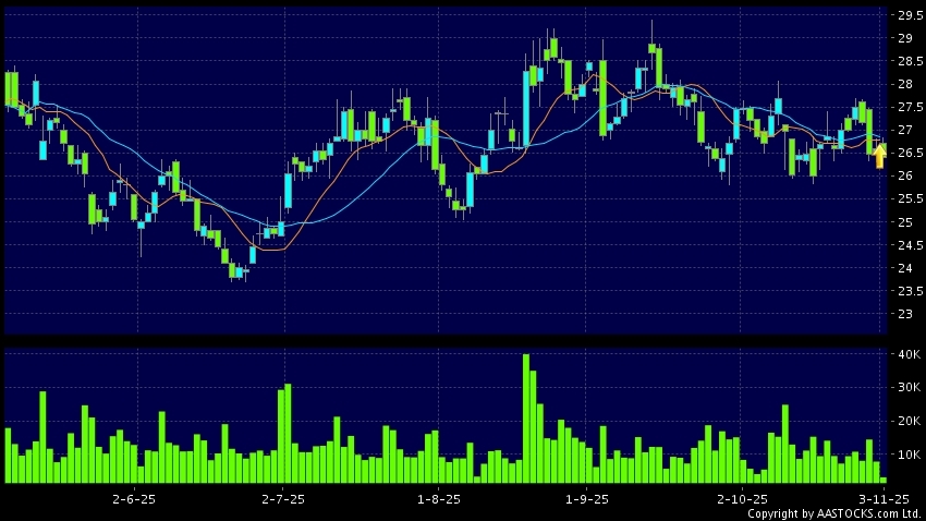 Disclaimer:The information, financial market data, quotes, charts, statistics and / or various technical analysis indicators are automatically generated based on the analyses and interpretations of publicly available information and should be used as references only at your own discretion. Such automatically generated content does not reflect the views or opinions of AASTOCKS.com Limited nor does AASTOCKS.com Limited make any guarantees to their accuracy, completeness, timeliness or correctness. You are advised to consult independent professional advice to verify pricing information or to obtain more detailed market information. Any uses of information or trades executed following the said automatically generated content are taken at your own risk for your own account.