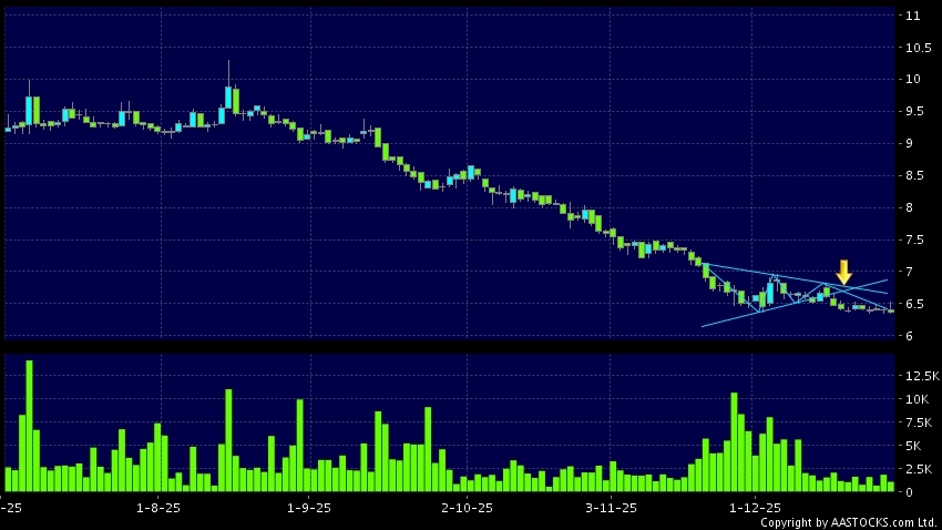 Triangle Breakout means the volatility of price movement is decreasing, stock price finally broke the bottom of triangle. A downward trend will start.(HK stocks quote is delayed for at least 15 mins.Short Selling Data as at 2025-12-31 12:25.)