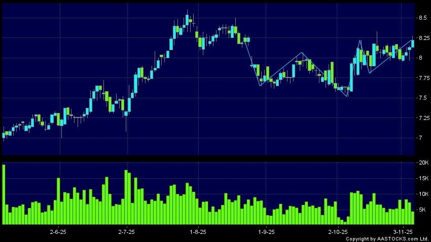 Disclaimer:The information, financial market data, quotes, charts, statistics and / or various technical analysis indicators are automatically generated based on the analyses and interpretations of publicly available information and should be used as references only at your own discretion. Such automatically generated content does not reflect the views or opinions of AASTOCKS.com Limited nor does AASTOCKS.com Limited make any guarantees to their accuracy, completeness, timeliness or correctness. You are advised to consult independent professional advice to verify pricing information or to obtain more detailed market information. Any uses of information or trades executed following the said automatically generated content are taken at your own risk for your own account.