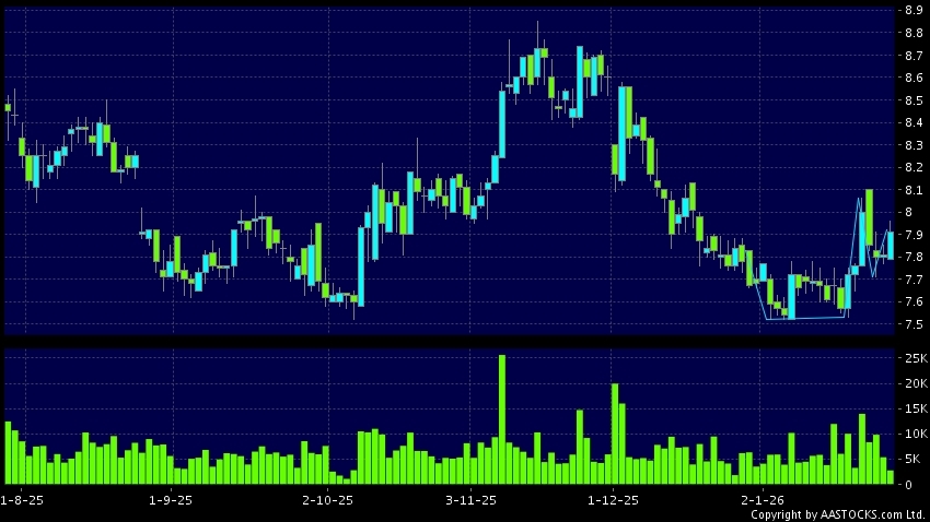 Disclaimer:The information, financial market data, quotes, charts, statistics and / or various technical analysis indicators are automatically generated based on the analyses and interpretations of publicly available information and should be used as references only at your own discretion. Such automatically generated content does not reflect the views or opinions of AASTOCKS.com Limited nor does AASTOCKS.com Limited make any guarantees to their accuracy, completeness, timeliness or correctness. You are advised to consult independent professional advice to verify pricing information or to obtain more detailed market information. Any uses of information or trades executed following the said automatically generated content are taken at your own risk for your own account.