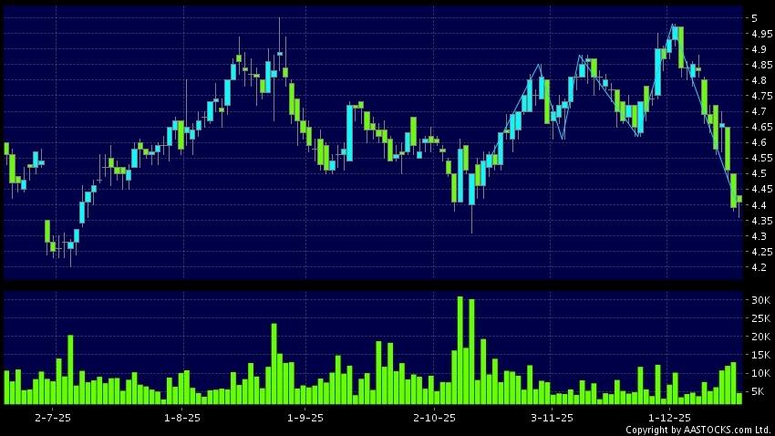Disclaimer:The information, financial market data, quotes, charts, statistics and / or various technical analysis indicators are automatically generated based on the analyses and interpretations of publicly available information and should be used as references only at your own discretion. Such automatically generated content does not reflect the views or opinions of AASTOCKS.com Limited nor does AASTOCKS.com Limited make any guarantees to their accuracy, completeness, timeliness or correctness. You are advised to consult independent professional advice to verify pricing information or to obtain more detailed market information. Any uses of information or trades executed following the said automatically generated content are taken at your own risk for your own account.