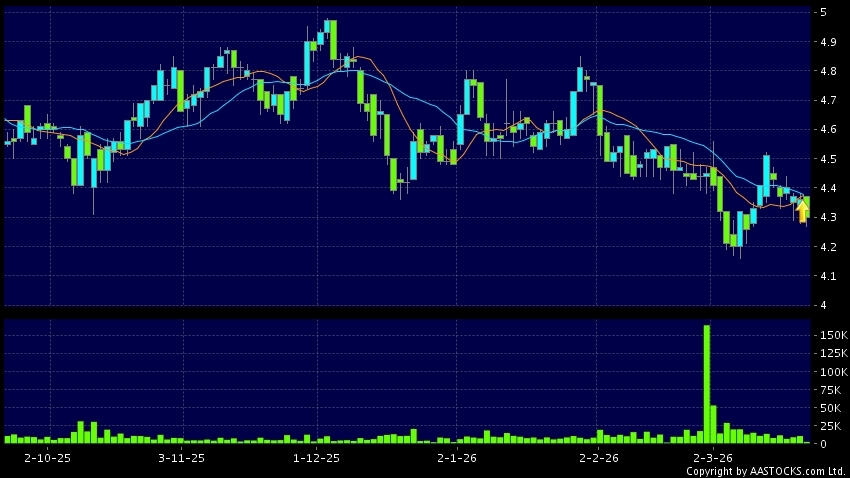 Disclaimer:The information, financial market data, quotes, charts, statistics and / or various technical analysis indicators are automatically generated based on the analyses and interpretations of publicly available information and should be used as references only at your own discretion. Such automatically generated content does not reflect the views or opinions of AASTOCKS.com Limited nor does AASTOCKS.com Limited make any guarantees to their accuracy, completeness, timeliness or correctness. You are advised to consult independent professional advice to verify pricing information or to obtain more detailed market information. Any uses of information or trades executed following the said automatically generated content are taken at your own risk for your own account.