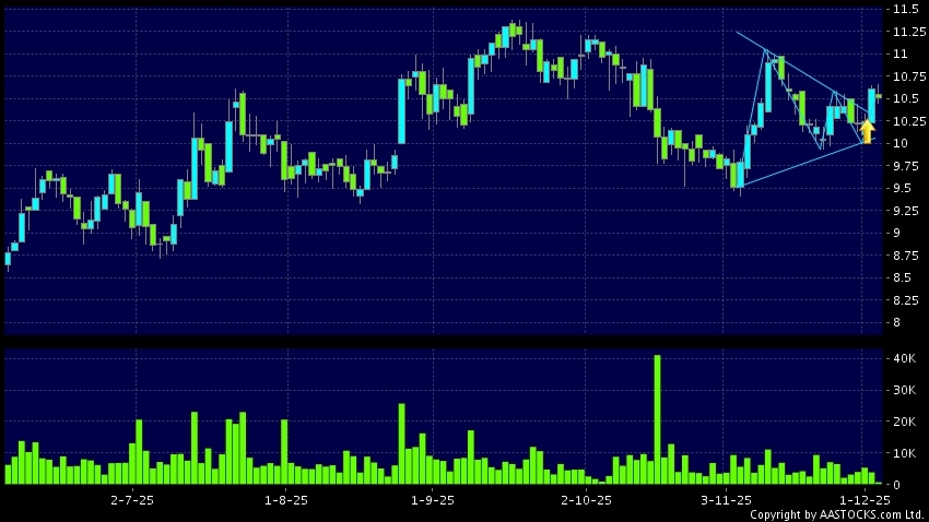 Triangle Breakout means the volatility of price movement is decreasing, stock price finally broke the top of triangle. An upward trend will start.(HK stocks quote is delayed for at least 15 mins.Short Selling Data as at 2025-12-31 12:25.)