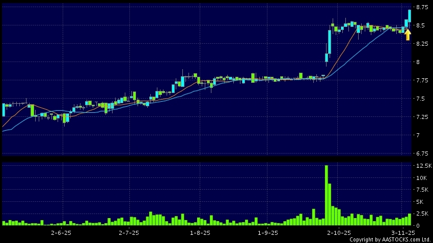 Disclaimer:The information, financial market data, quotes, charts, statistics and / or various technical analysis indicators are automatically generated based on the analyses and interpretations of publicly available information and should be used as references only at your own discretion. Such automatically generated content does not reflect the views or opinions of AASTOCKS.com Limited nor does AASTOCKS.com Limited make any guarantees to their accuracy, completeness, timeliness or correctness. You are advised to consult independent professional advice to verify pricing information or to obtain more detailed market information. Any uses of information or trades executed following the said automatically generated content are taken at your own risk for your own account.