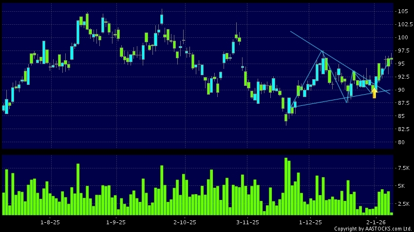Triangle Breakout means the volatility of price movement is decreasing, stock price finally broke the top of triangle. An upward trend will start.(HK stocks quote is delayed for at least 15 mins.Short Selling Data as at 2026-01-09 16:25.)