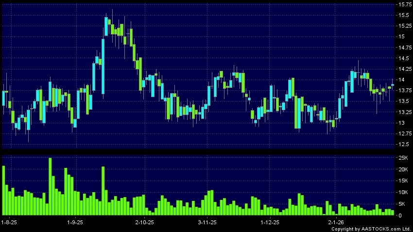 Disclaimer:The information, financial market data, quotes, charts, statistics and / or various technical analysis indicators are automatically generated based on the analyses and interpretations of publicly available information and should be used as references only at your own discretion. Such automatically generated content does not reflect the views or opinions of AASTOCKS.com Limited nor does AASTOCKS.com Limited make any guarantees to their accuracy, completeness, timeliness or correctness. You are advised to consult independent professional advice to verify pricing information or to obtain more detailed market information. Any uses of information or trades executed following the said automatically generated content are taken at your own risk for your own account.