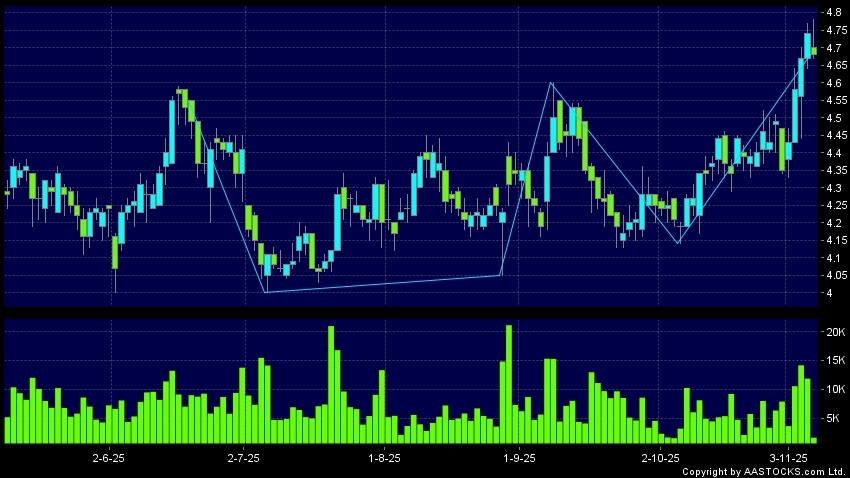 Disclaimer:The information, financial market data, quotes, charts, statistics and / or various technical analysis indicators are automatically generated based on the analyses and interpretations of publicly available information and should be used as references only at your own discretion. Such automatically generated content does not reflect the views or opinions of AASTOCKS.com Limited nor does AASTOCKS.com Limited make any guarantees to their accuracy, completeness, timeliness or correctness. You are advised to consult independent professional advice to verify pricing information or to obtain more detailed market information. Any uses of information or trades executed following the said automatically generated content are taken at your own risk for your own account.