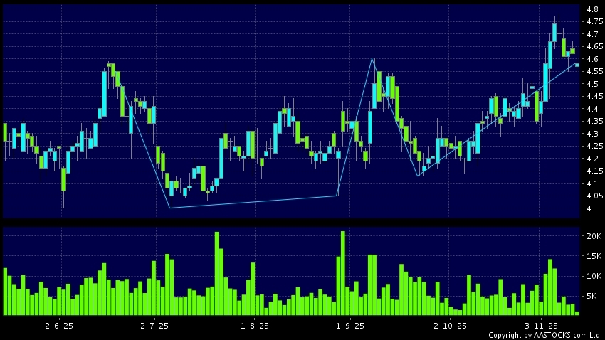 Disclaimer:The information, financial market data, quotes, charts, statistics and / or various technical analysis indicators are automatically generated based on the analyses and interpretations of publicly available information and should be used as references only at your own discretion. Such automatically generated content does not reflect the views or opinions of AASTOCKS.com Limited nor does AASTOCKS.com Limited make any guarantees to their accuracy, completeness, timeliness or correctness. You are advised to consult independent professional advice to verify pricing information or to obtain more detailed market information. Any uses of information or trades executed following the said automatically generated content are taken at your own risk for your own account.