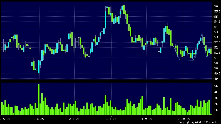 Disclaimer:The information, financial market data, quotes, charts, statistics and / or various technical analysis indicators are automatically generated based on the analyses and interpretations of publicly available information and should be used as references only at your own discretion. Such automatically generated content does not reflect the views or opinions of AASTOCKS.com Limited nor does AASTOCKS.com Limited make any guarantees to their accuracy, completeness, timeliness or correctness. You are advised to consult independent professional advice to verify pricing information or to obtain more detailed market information. Any uses of information or trades executed following the said automatically generated content are taken at your own risk for your own account.