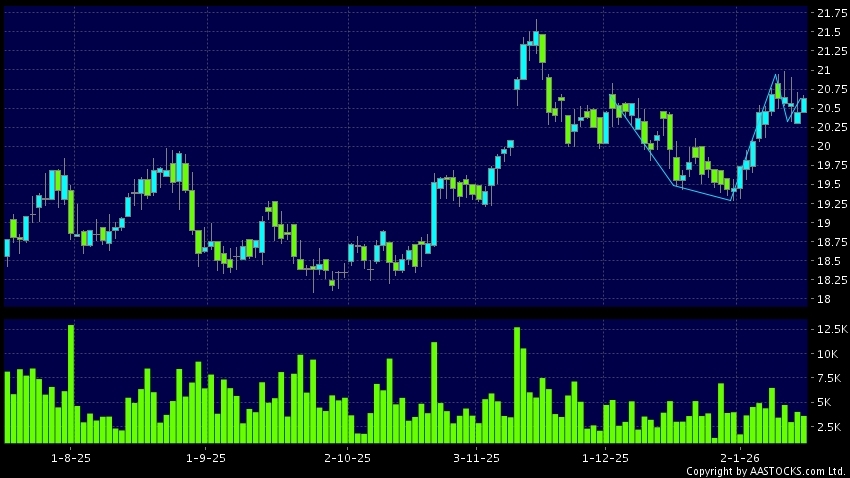 Disclaimer:The information, financial market data, quotes, charts, statistics and / or various technical analysis indicators are automatically generated based on the analyses and interpretations of publicly available information and should be used as references only at your own discretion. Such automatically generated content does not reflect the views or opinions of AASTOCKS.com Limited nor does AASTOCKS.com Limited make any guarantees to their accuracy, completeness, timeliness or correctness. You are advised to consult independent professional advice to verify pricing information or to obtain more detailed market information. Any uses of information or trades executed following the said automatically generated content are taken at your own risk for your own account.
