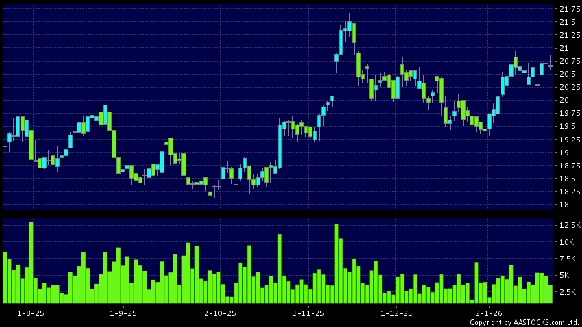 Disclaimer:The information, financial market data, quotes, charts, statistics and / or various technical analysis indicators are automatically generated based on the analyses and interpretations of publicly available information and should be used as references only at your own discretion. Such automatically generated content does not reflect the views or opinions of AASTOCKS.com Limited nor does AASTOCKS.com Limited make any guarantees to their accuracy, completeness, timeliness or correctness. You are advised to consult independent professional advice to verify pricing information or to obtain more detailed market information. Any uses of information or trades executed following the said automatically generated content are taken at your own risk for your own account.
