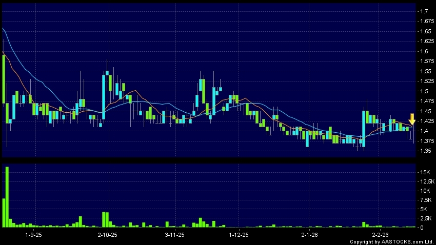 Disclaimer:The information, financial market data, quotes, charts, statistics and / or various technical analysis indicators are automatically generated based on the analyses and interpretations of publicly available information and should be used as references only at your own discretion. Such automatically generated content does not reflect the views or opinions of AASTOCKS.com Limited nor does AASTOCKS.com Limited make any guarantees to their accuracy, completeness, timeliness or correctness. You are advised to consult independent professional advice to verify pricing information or to obtain more detailed market information. Any uses of information or trades executed following the said automatically generated content are taken at your own risk for your own account.