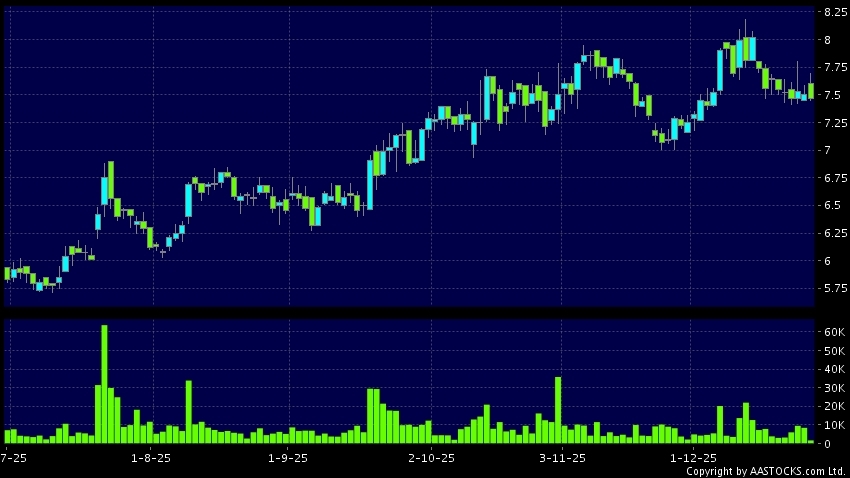 Disclaimer:The information, financial market data, quotes, charts, statistics and / or various technical analysis indicators are automatically generated based on the analyses and interpretations of publicly available information and should be used as references only at your own discretion. Such automatically generated content does not reflect the views or opinions of AASTOCKS.com Limited nor does AASTOCKS.com Limited make any guarantees to their accuracy, completeness, timeliness or correctness. You are advised to consult independent professional advice to verify pricing information or to obtain more detailed market information. Any uses of information or trades executed following the said automatically generated content are taken at your own risk for your own account.